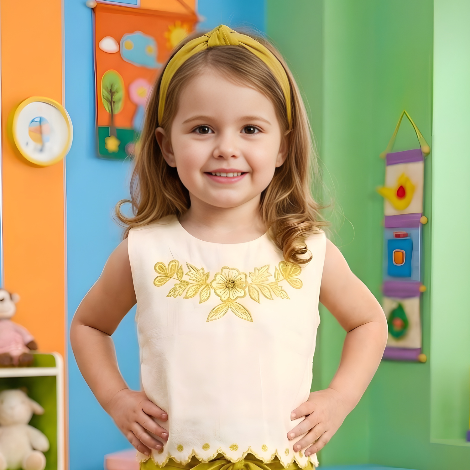 Vibrant mustard shorts set designed for modern girls. Trendy silhouette with comfortable fit, perfect for casual outings and everyday style.
