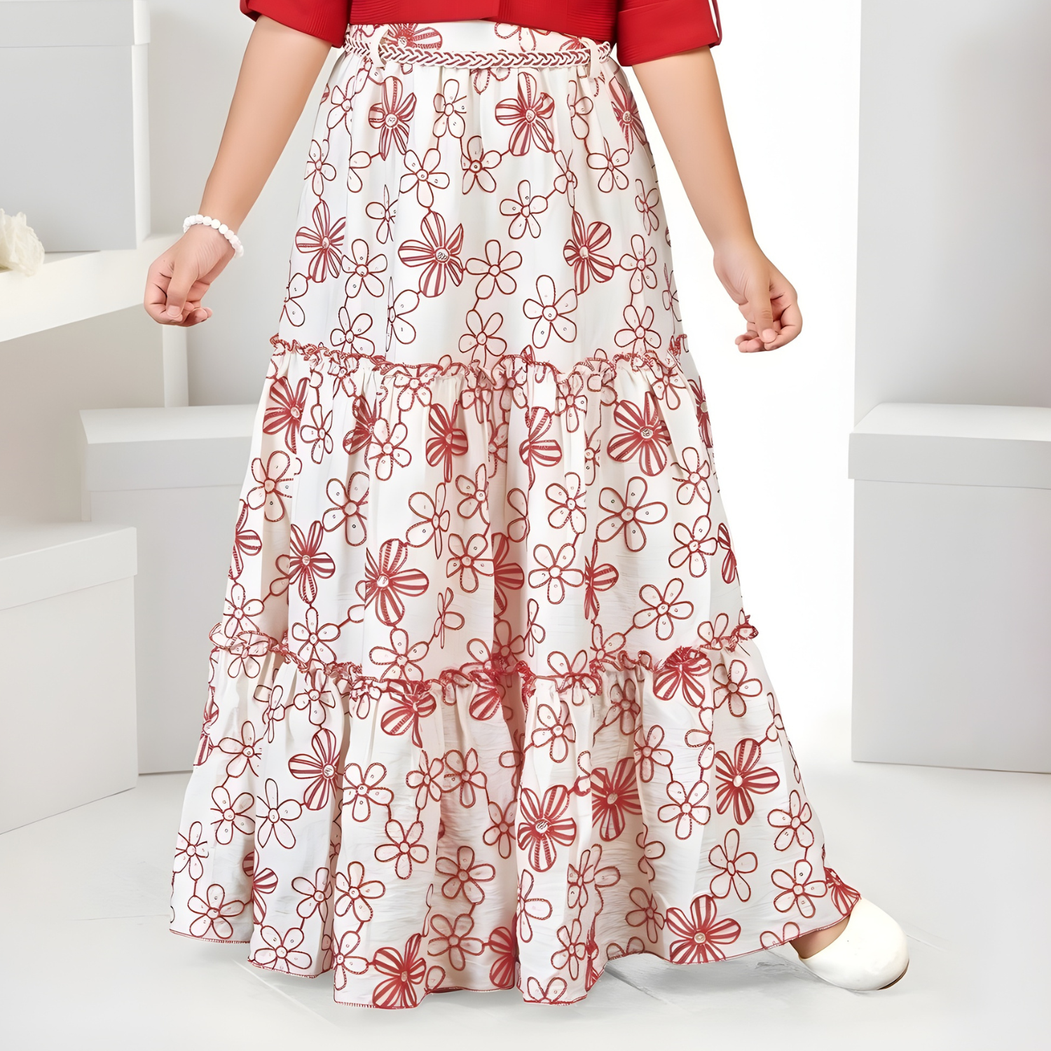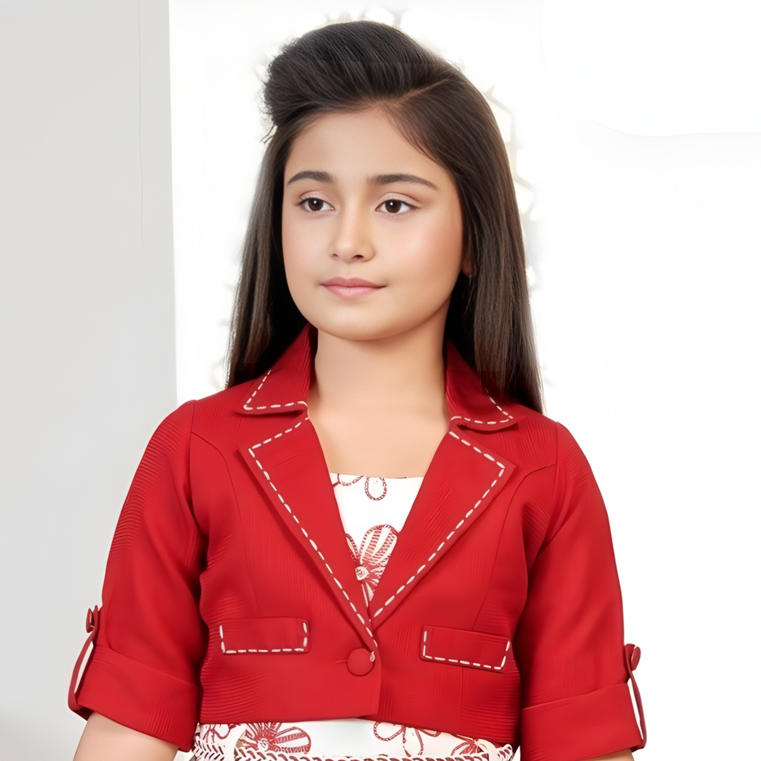 New Stylish Girls Printed Frock With Jacket Set