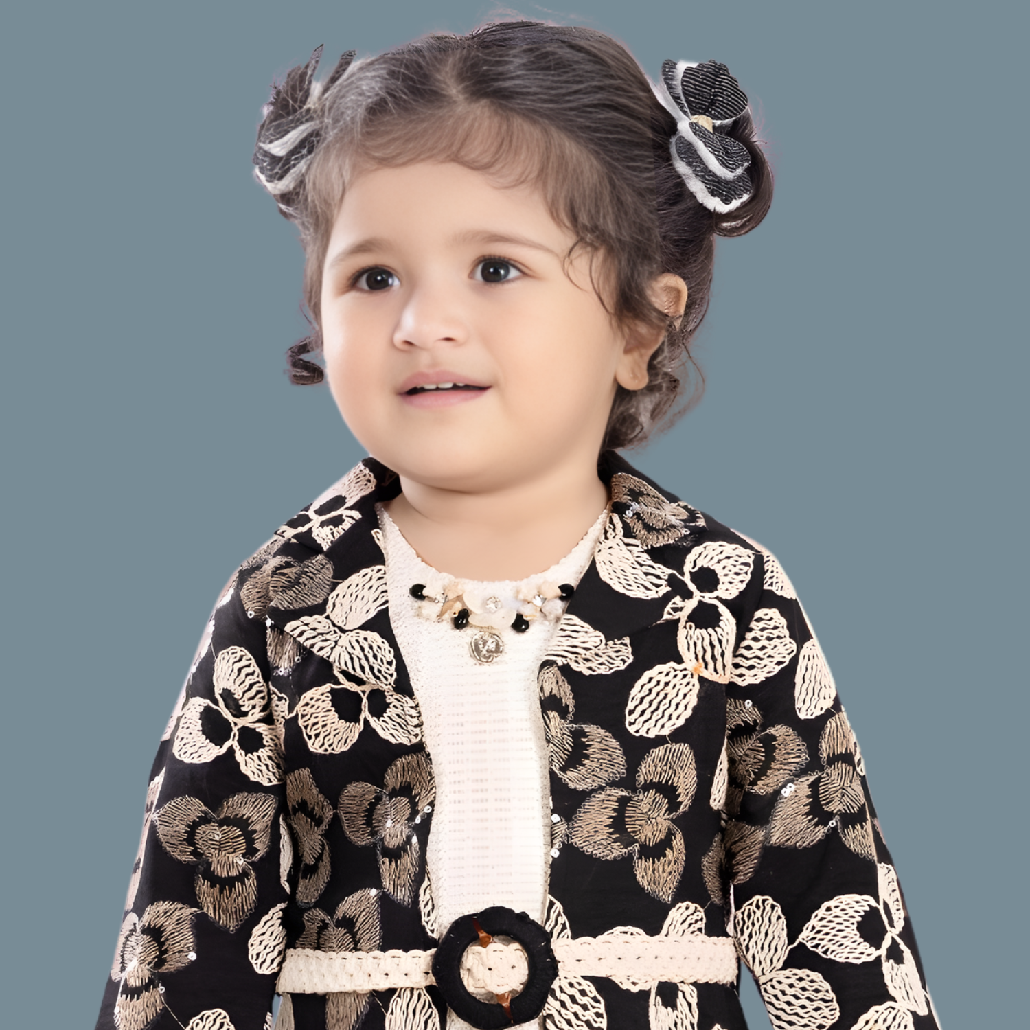 Elegant black printed frock perfect for parties. Stylish design with comfortable fit, ideal for special occasions and celebrations.