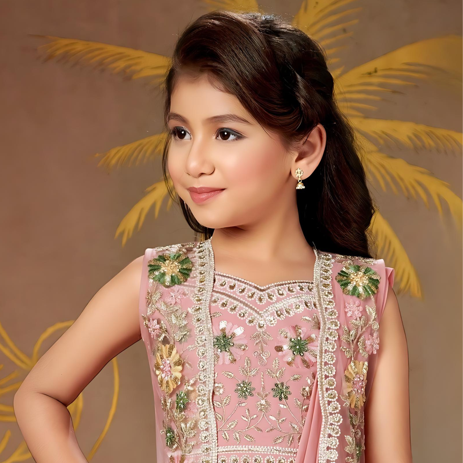 Boys Gold Jacket Set with Embroidered Jacket