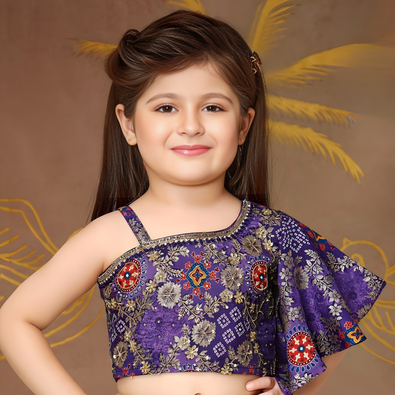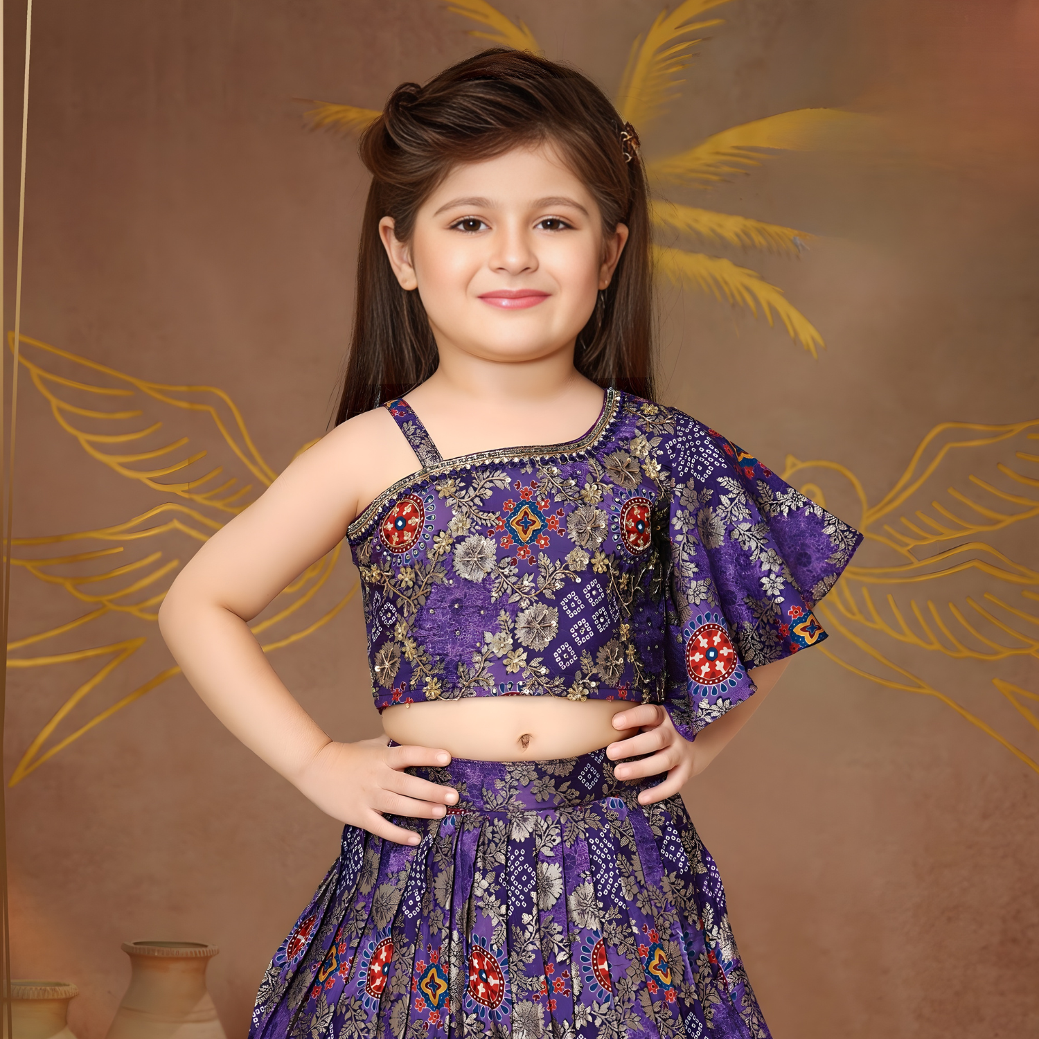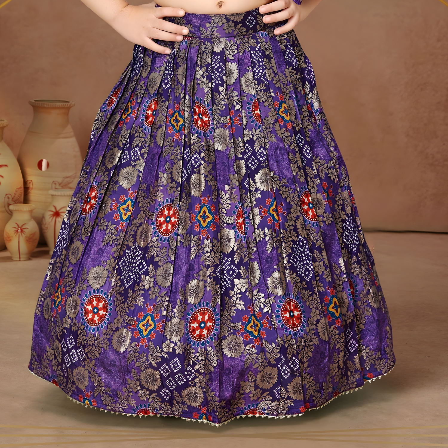 Purple Banarasi Silk Girls Lehenga Choli