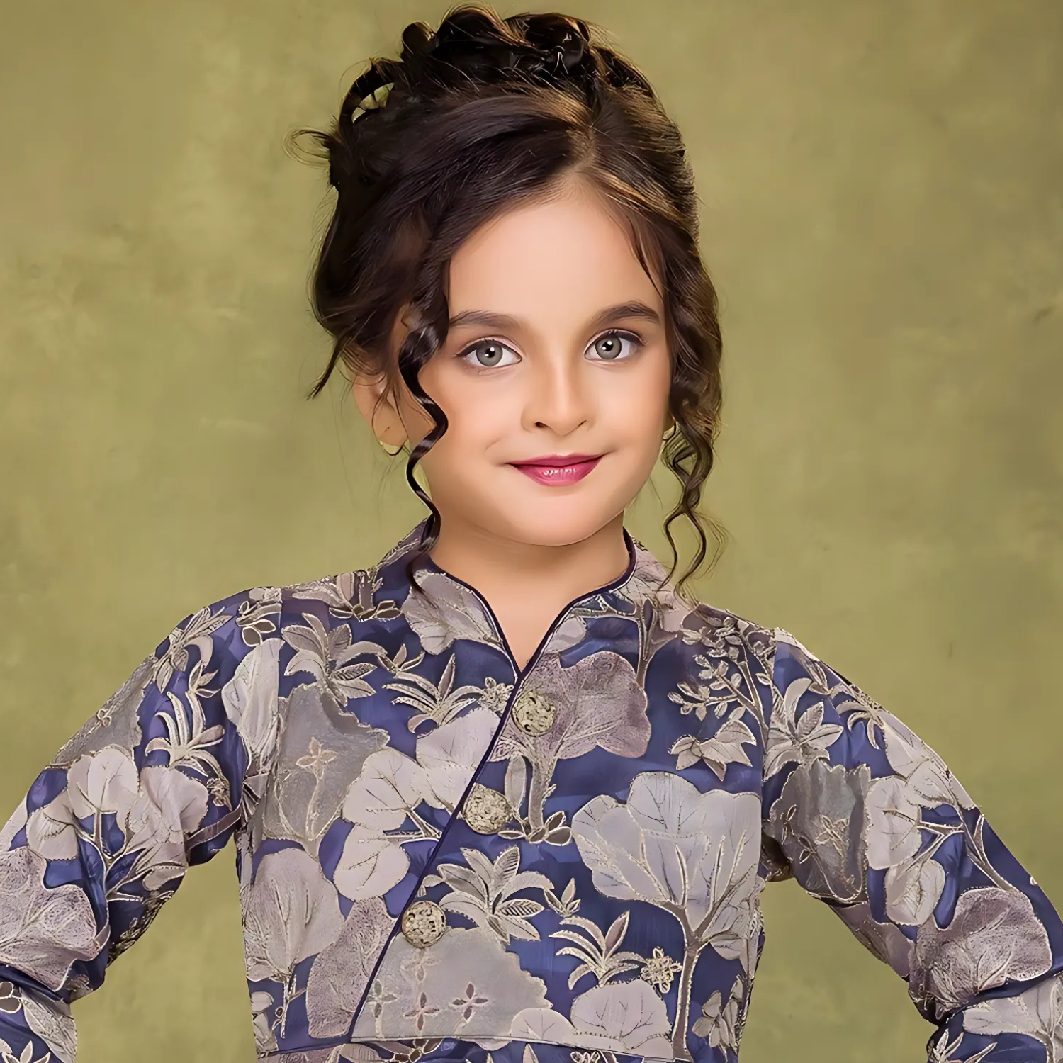 Elegant purple draped dhoti set featuring intricate floral prints. Perfect fusion of traditional and contemporary style for festive occasions.
