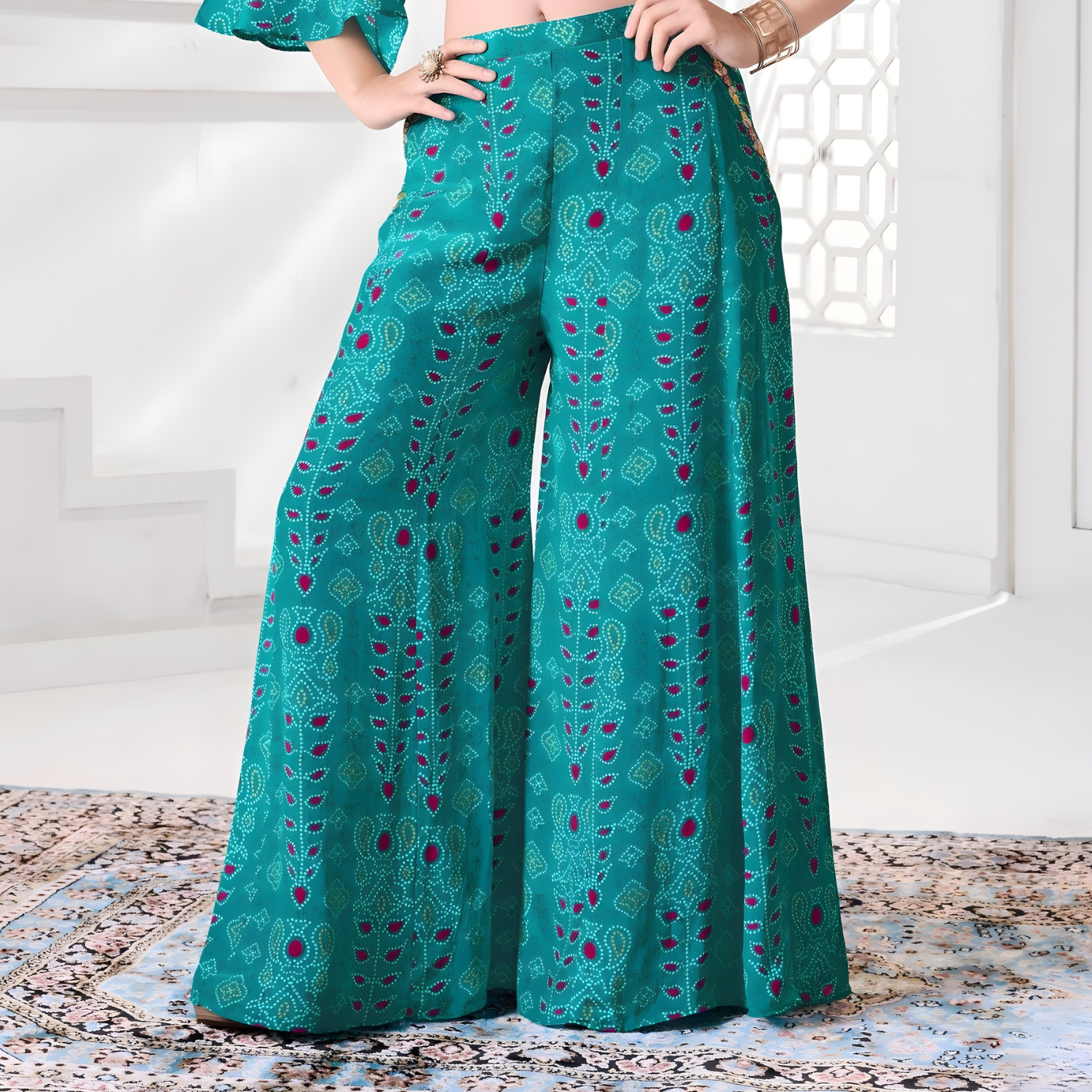 Rama green designer silk palazzo outfit