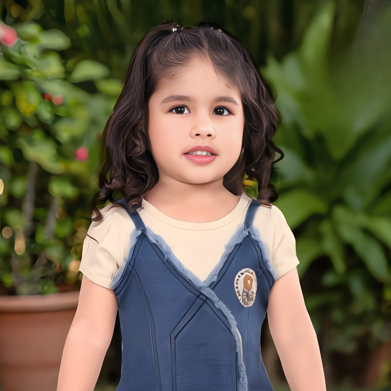 Trendy denim frock for girls featuring a knee-length cut. Perfect for casual outings and everyday wear with comfortable fit,