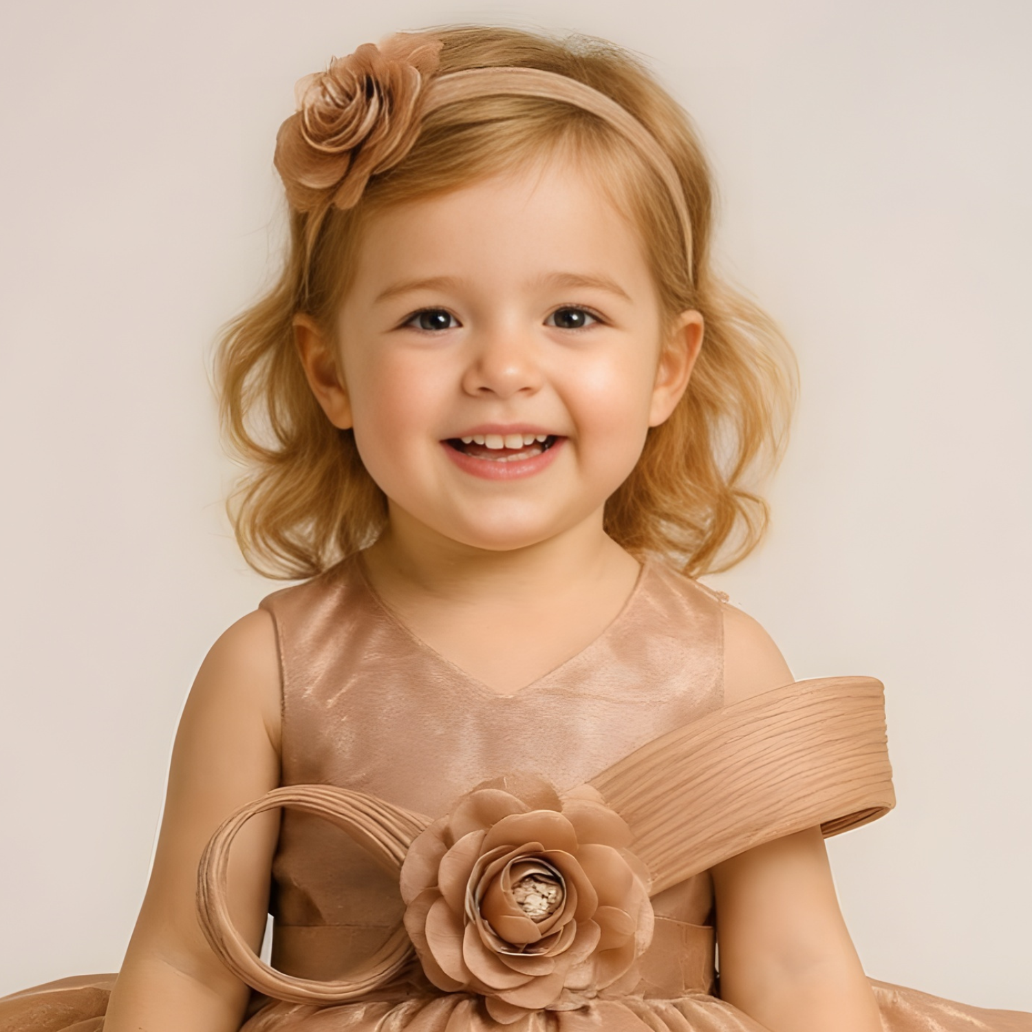 Elegant Brown net frock perfect for celebrations. Lightweight, comfortable design with graceful draping. Ideal for parties and special occasions.
