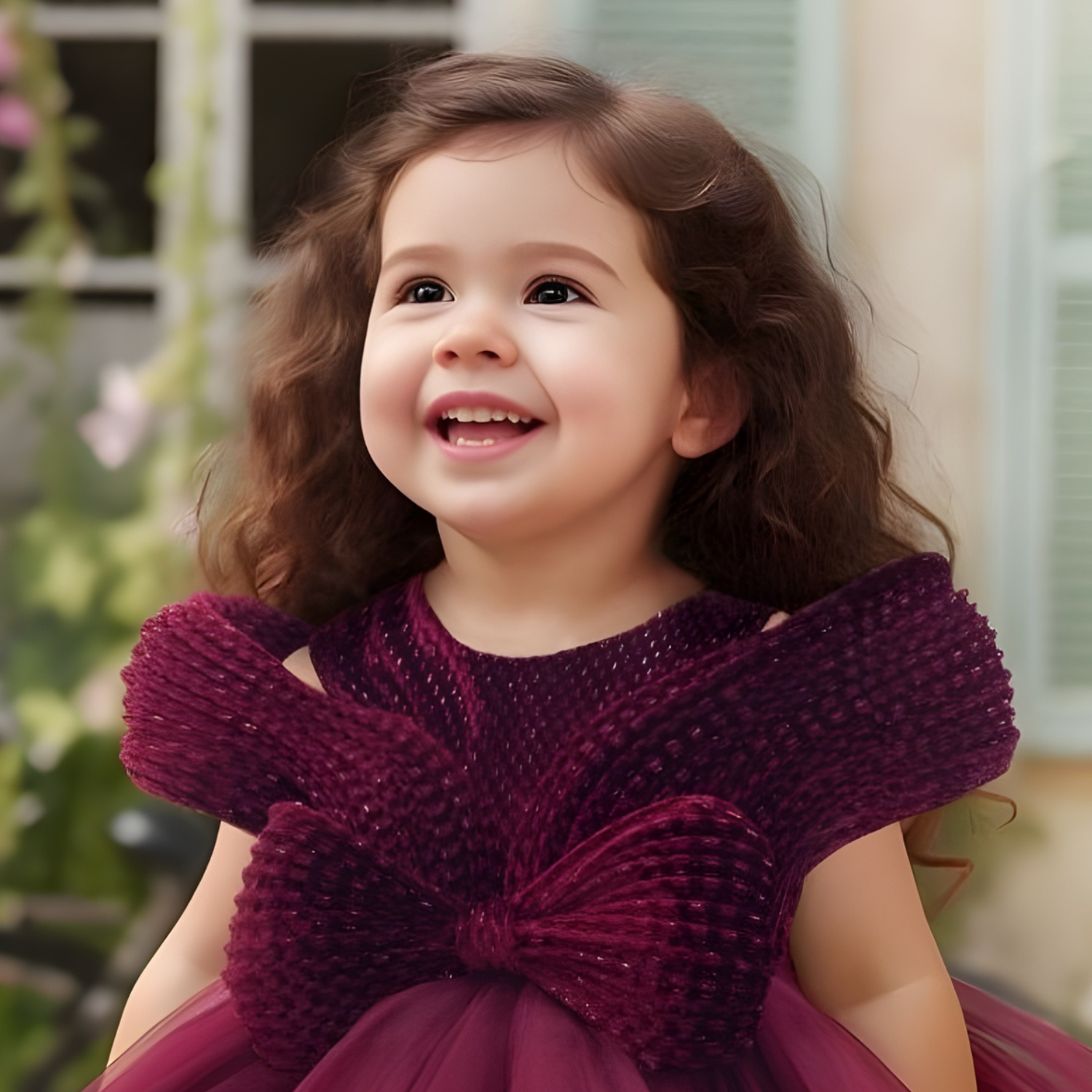 This Wine party wear frock for girls features a charming oversized bow that adds a touch of playful elegance. Crafted for comfort and style, it’s perfect for special occasions and celebrations.