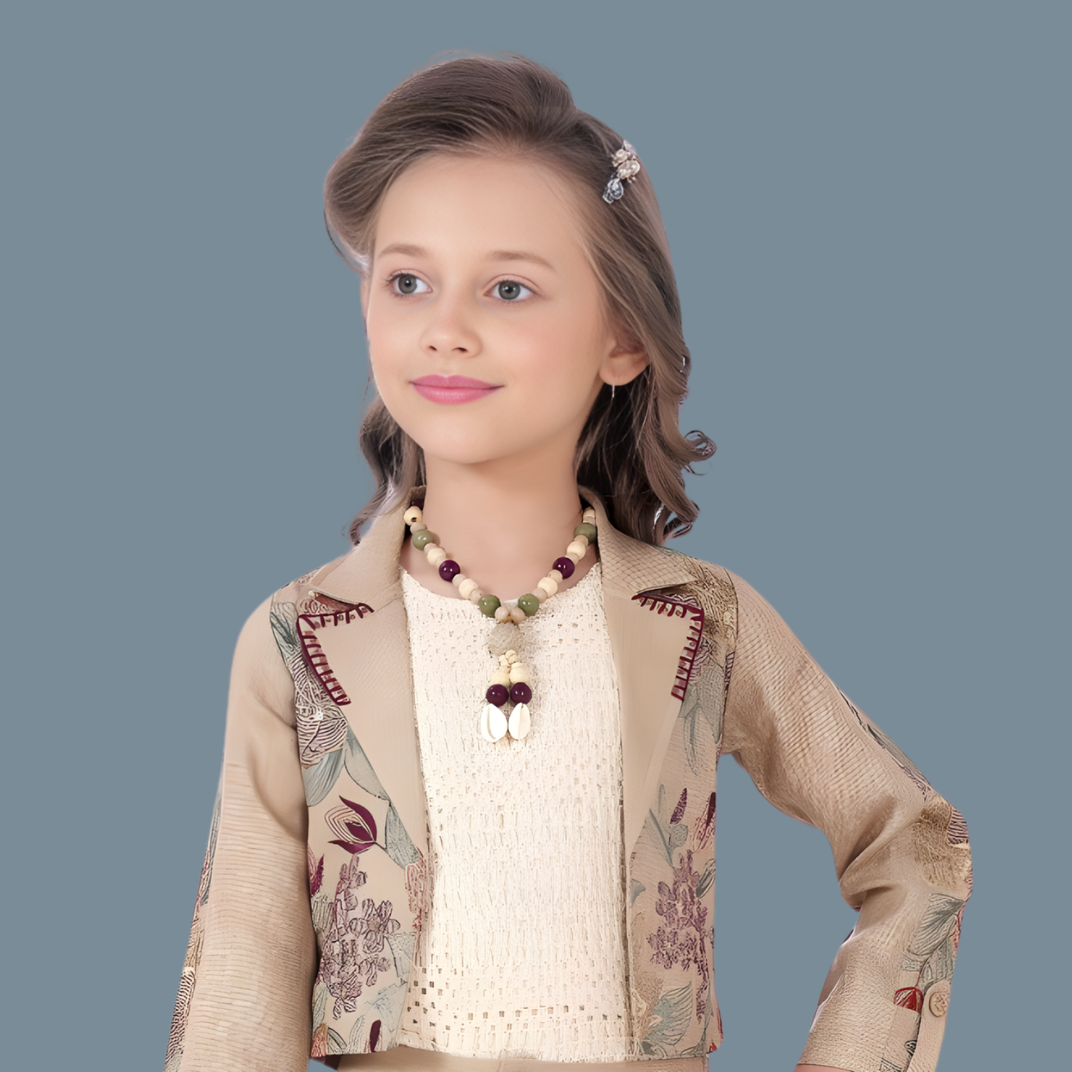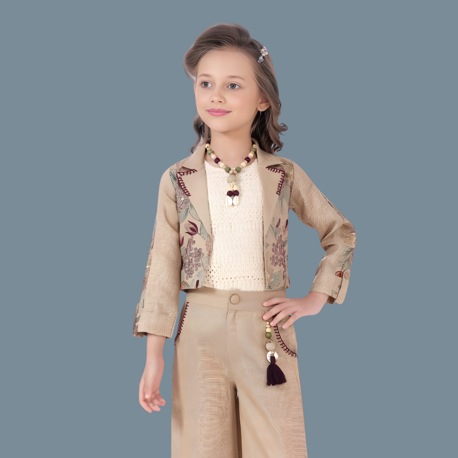Stylish fawn-colored pant set designed for girls. Perfect for casual outings and everyday wear with contemporary appeal.