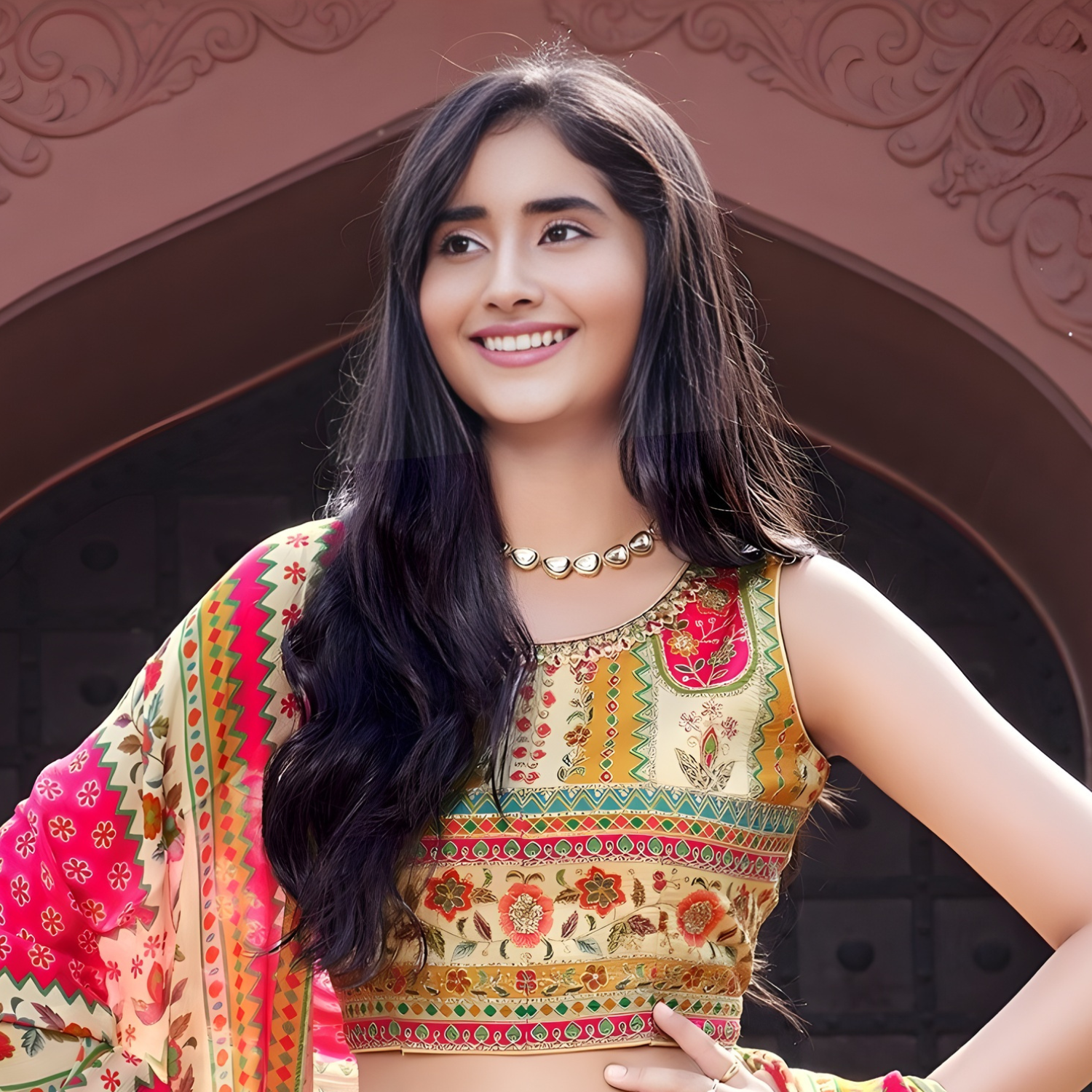 Vibrant multi-colour printed lehenga choli featuring contemporary designs. Perfect for celebrations, weddings, and festive occasions with traditional elegance.