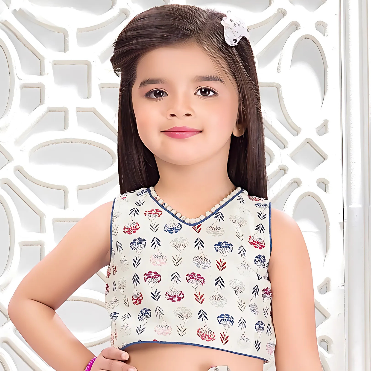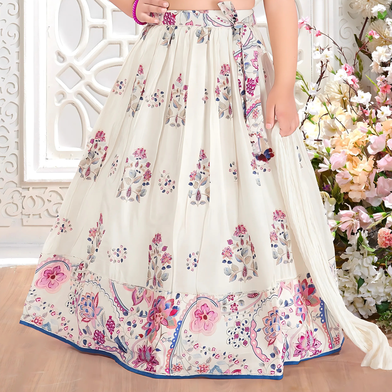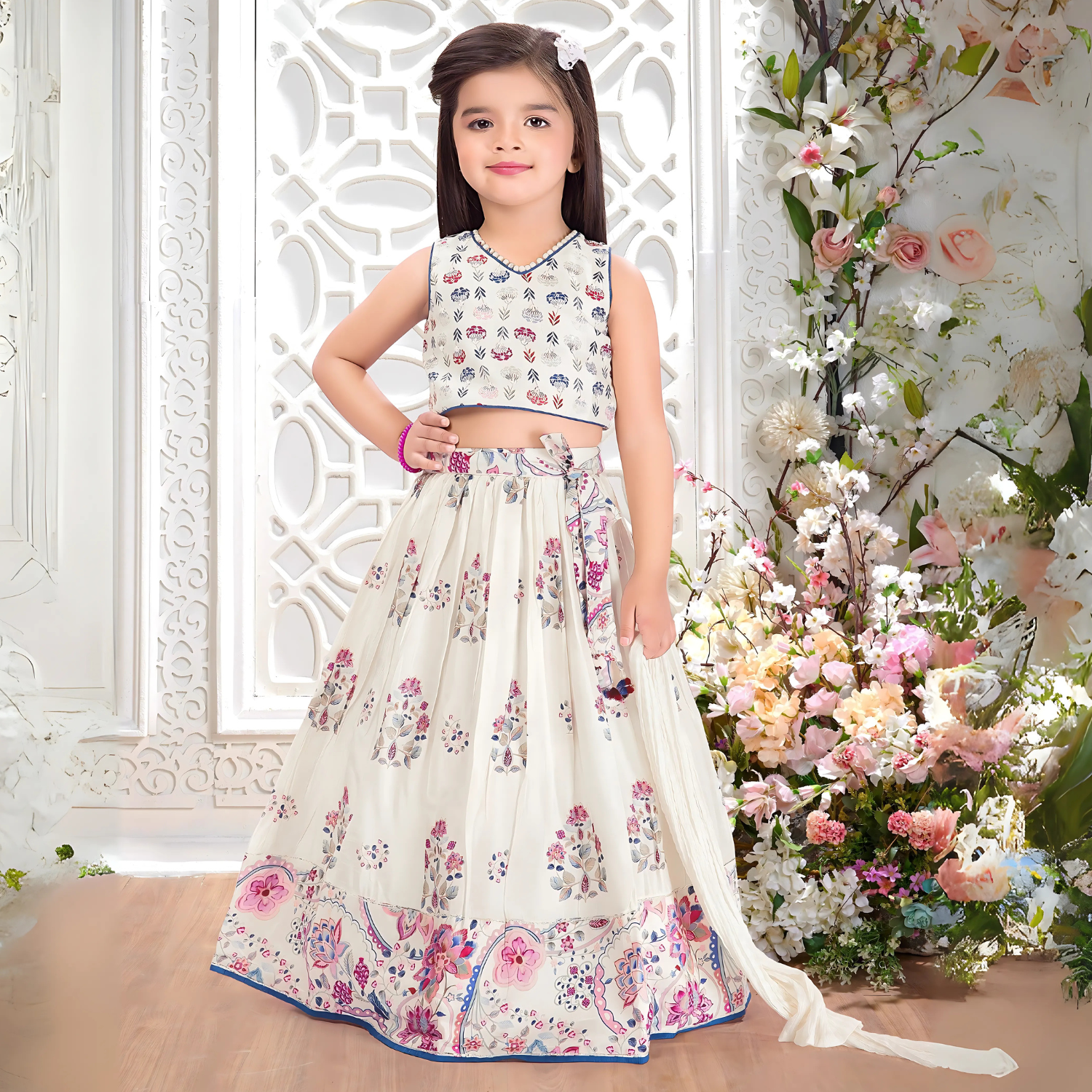 This white lehenga choli features intricate embroidery, combining elegance with traditional style perfect for girls. Crafted for comfort and festive occasions, it offers a graceful look that stands out.