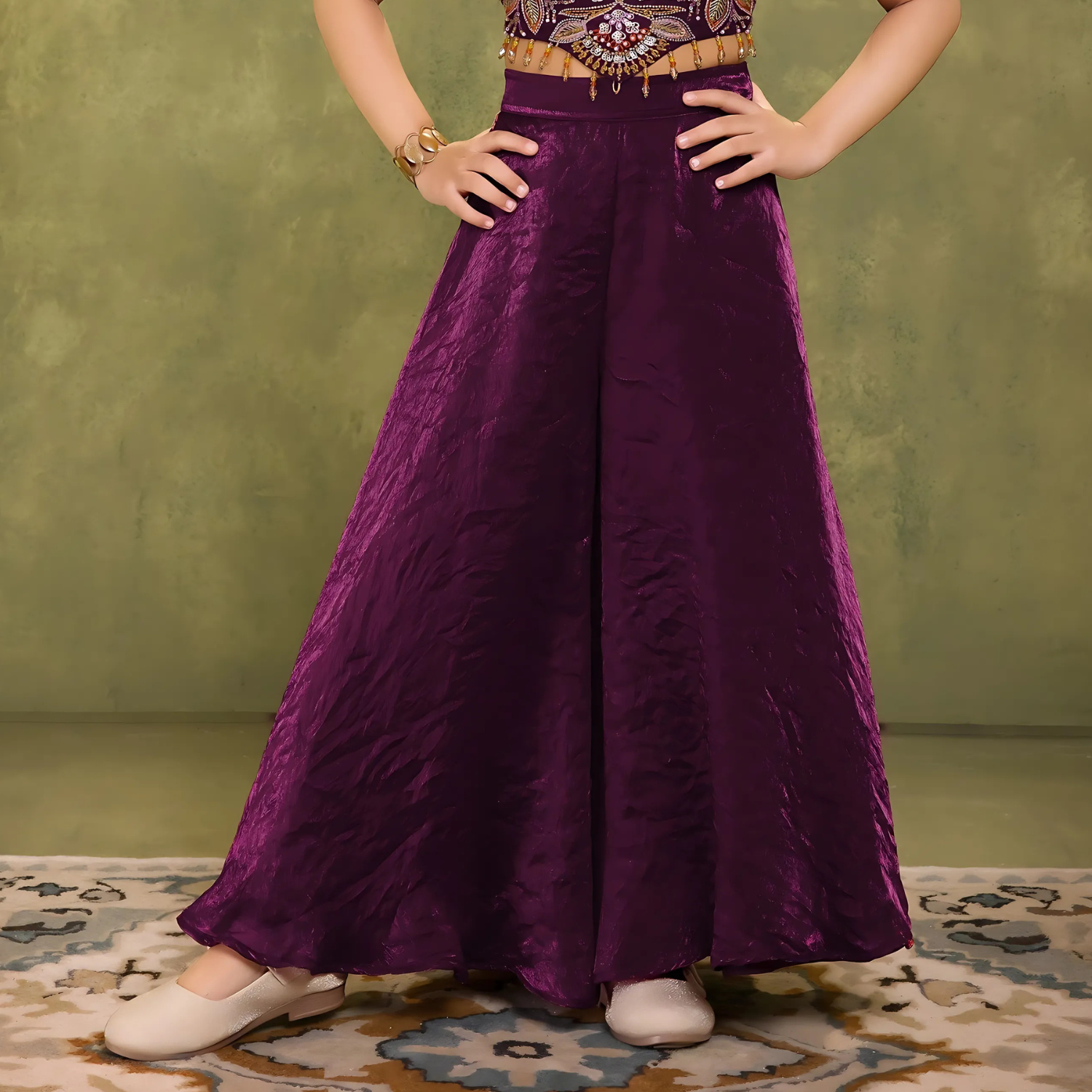 this Wine Elegant Chiffon Embroidered Palazzo Set, crafted from lightweight chiffon fabric that offers breathability and effortless drape. The intricate embroidery adds a refined touch to the rich wine hue, while the palazzo pants provide comfortable movement without compromising style. Perfect for formal occasions, this set combines traditional elegance with modern comfort.