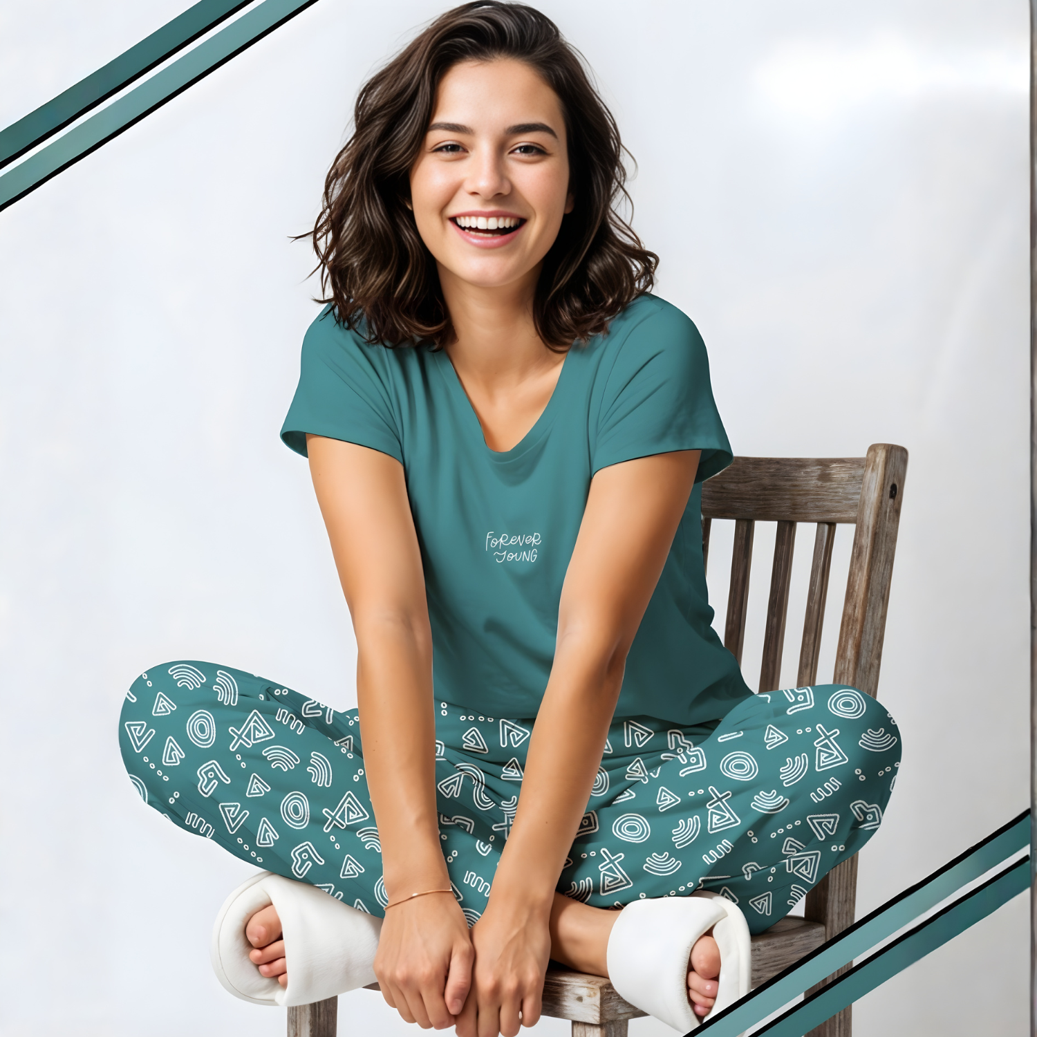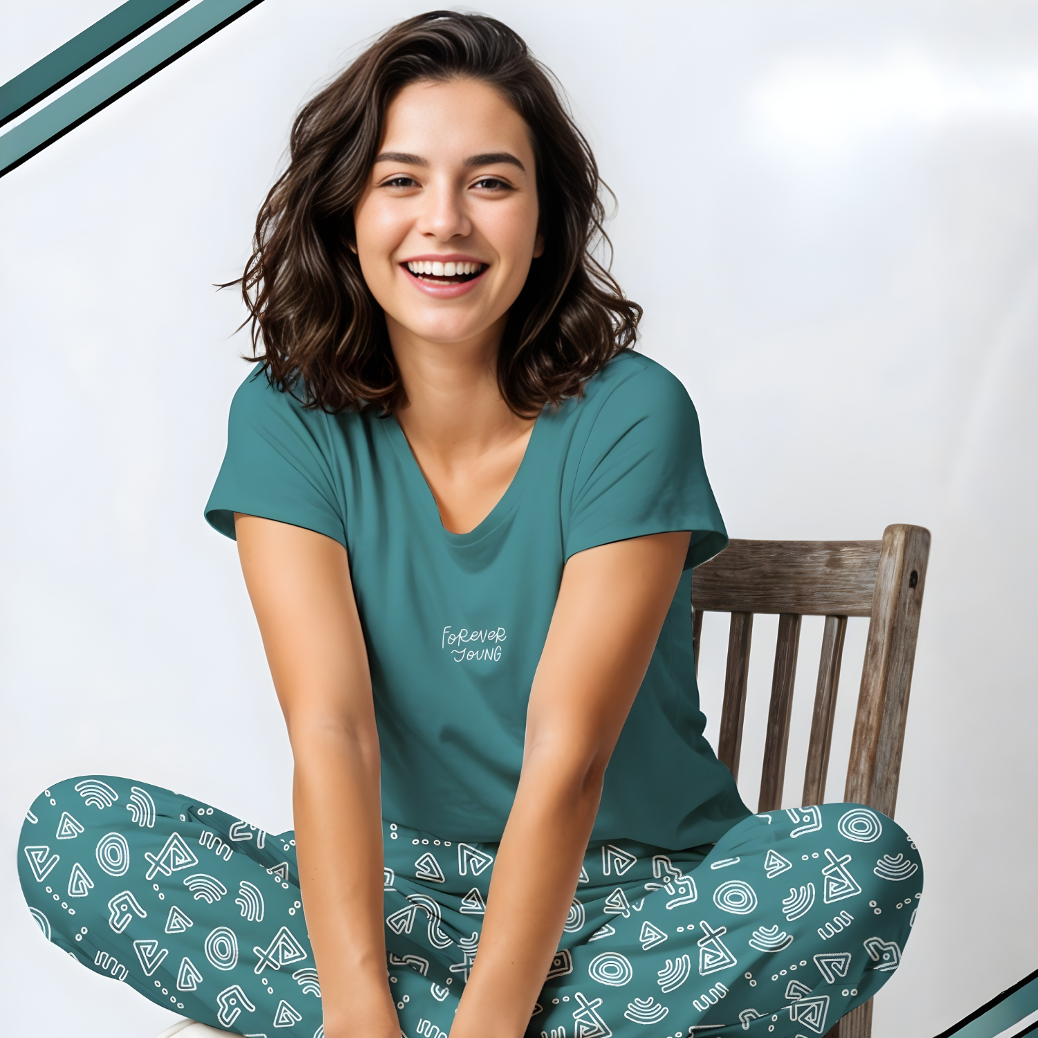Comfortable green night suit with round neckline and half sleeves. Perfect for relaxed evenings and restful sleep in breathable fabric.