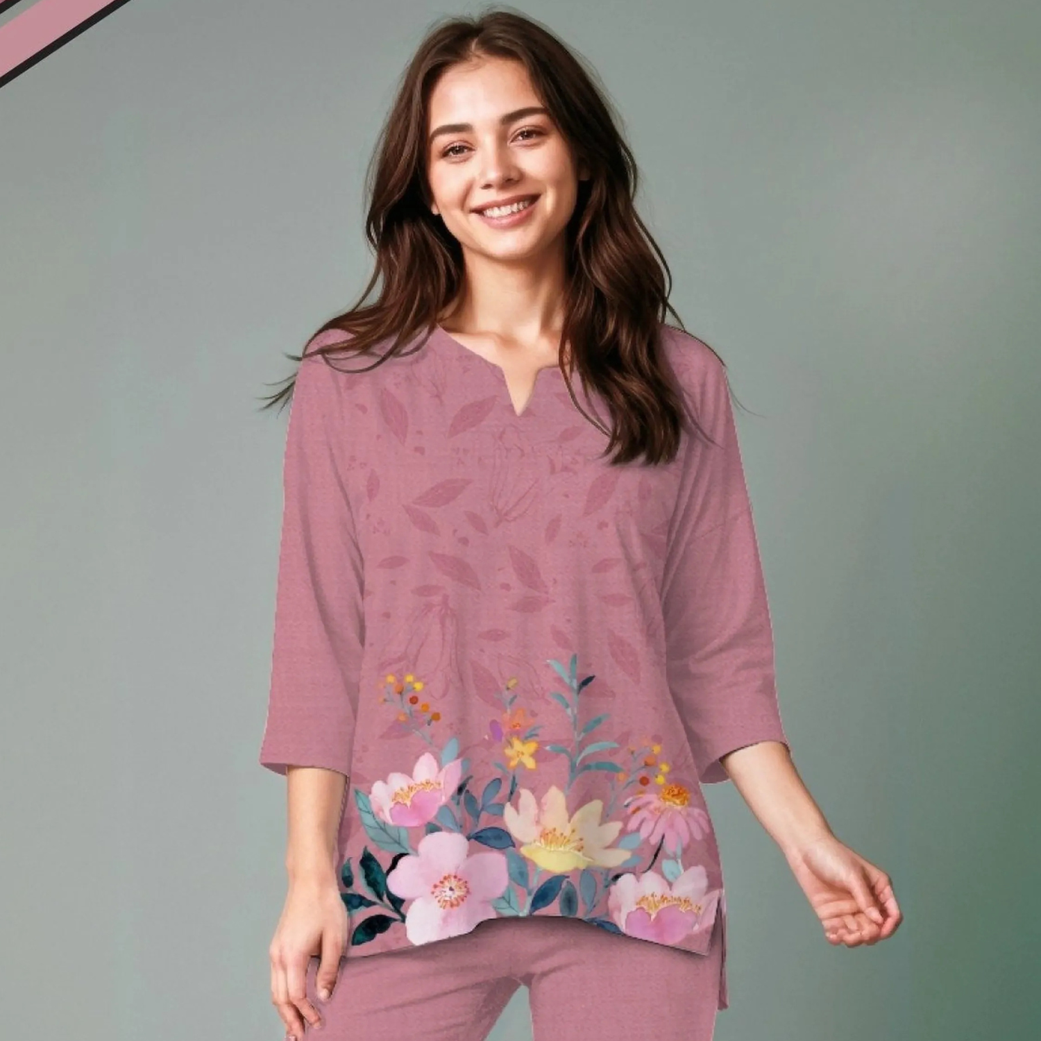Ladies Maroon Stylish Floral Printed Night Suit Set